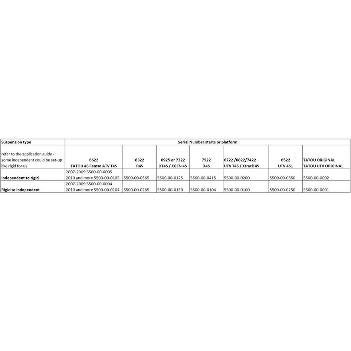 Detta bakre kit konverterar från stel till delad fjädring och är kompatibelt med ATV T4S-bandssystem från 2010 och framåt, samt alla X4S-bandssystem.