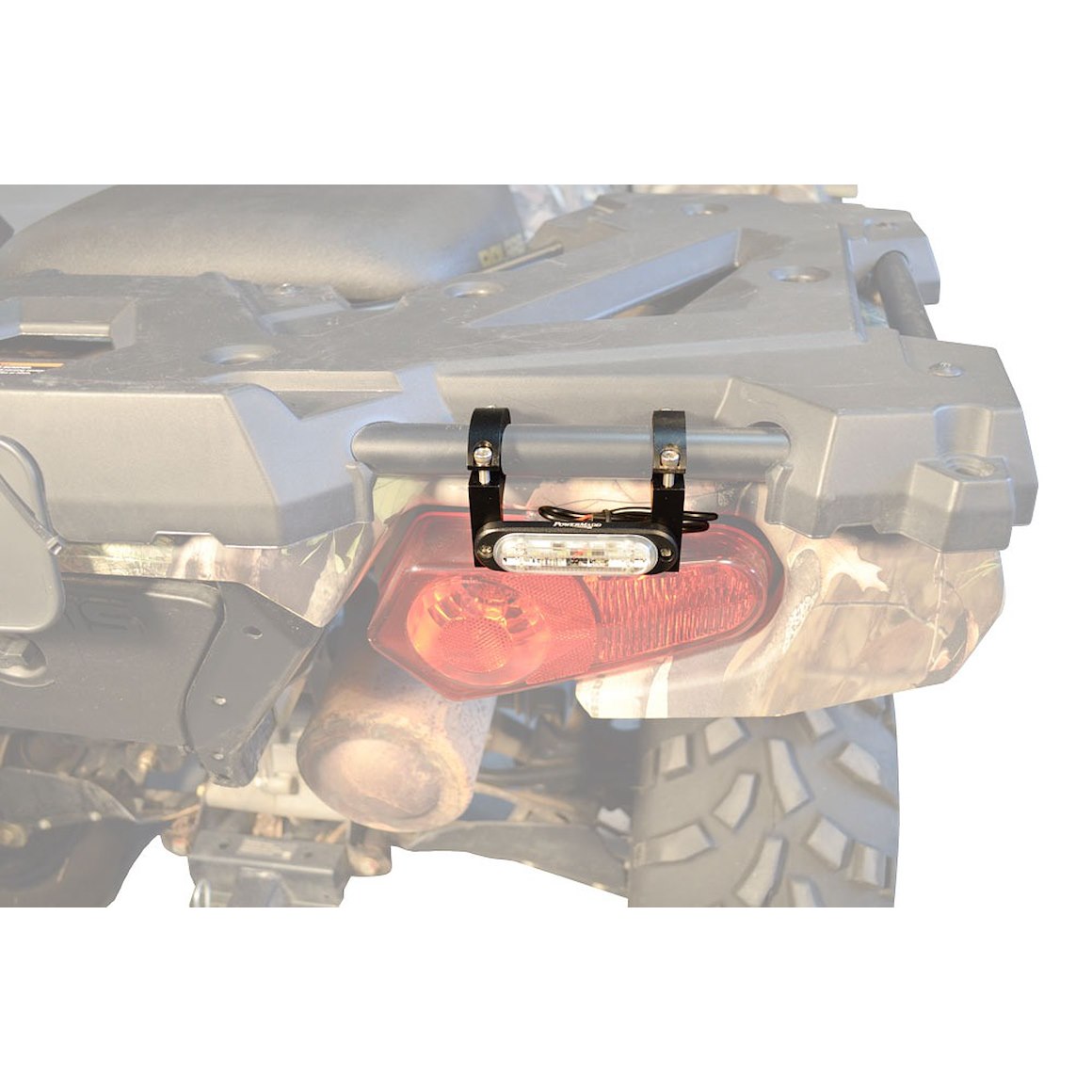 Backlampan är en LED lampa med 800 lumen ljusstyrka och bred ljusbild för god sikt bakåt, lampan monteras med de medföljande fästena på lastracket bak på din ATV.