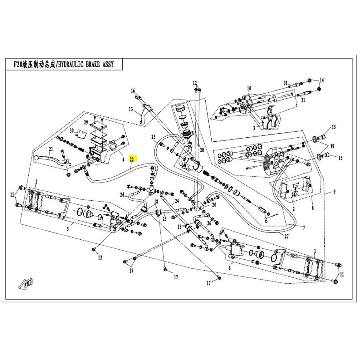 Bromsslang frambroms övre CF Moto. Nummer 22 på skiss. Längd 80 cm