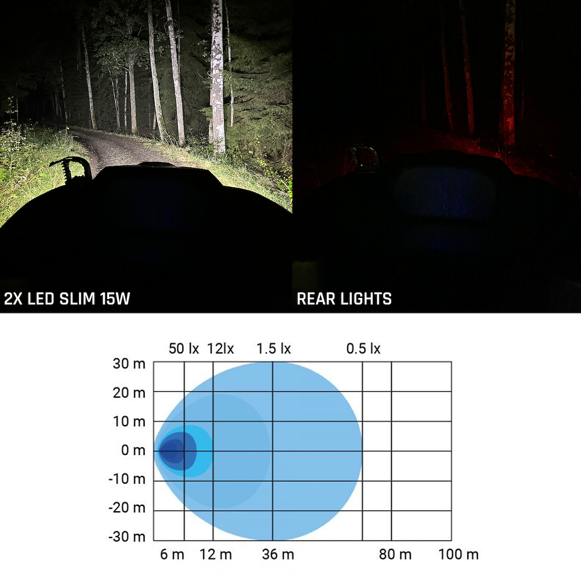 - En mindre version av vår populära Slim 30W-lampa. Rekommenderas att monteras bak på din maskin. Den smidiga storleken gör att den enkelt kan döljas under lastracket bak eller på liknande plats. Kan användas som singellampa men gör sig bäst i par, vinklade lite utåt för ett heltäckande backljus.