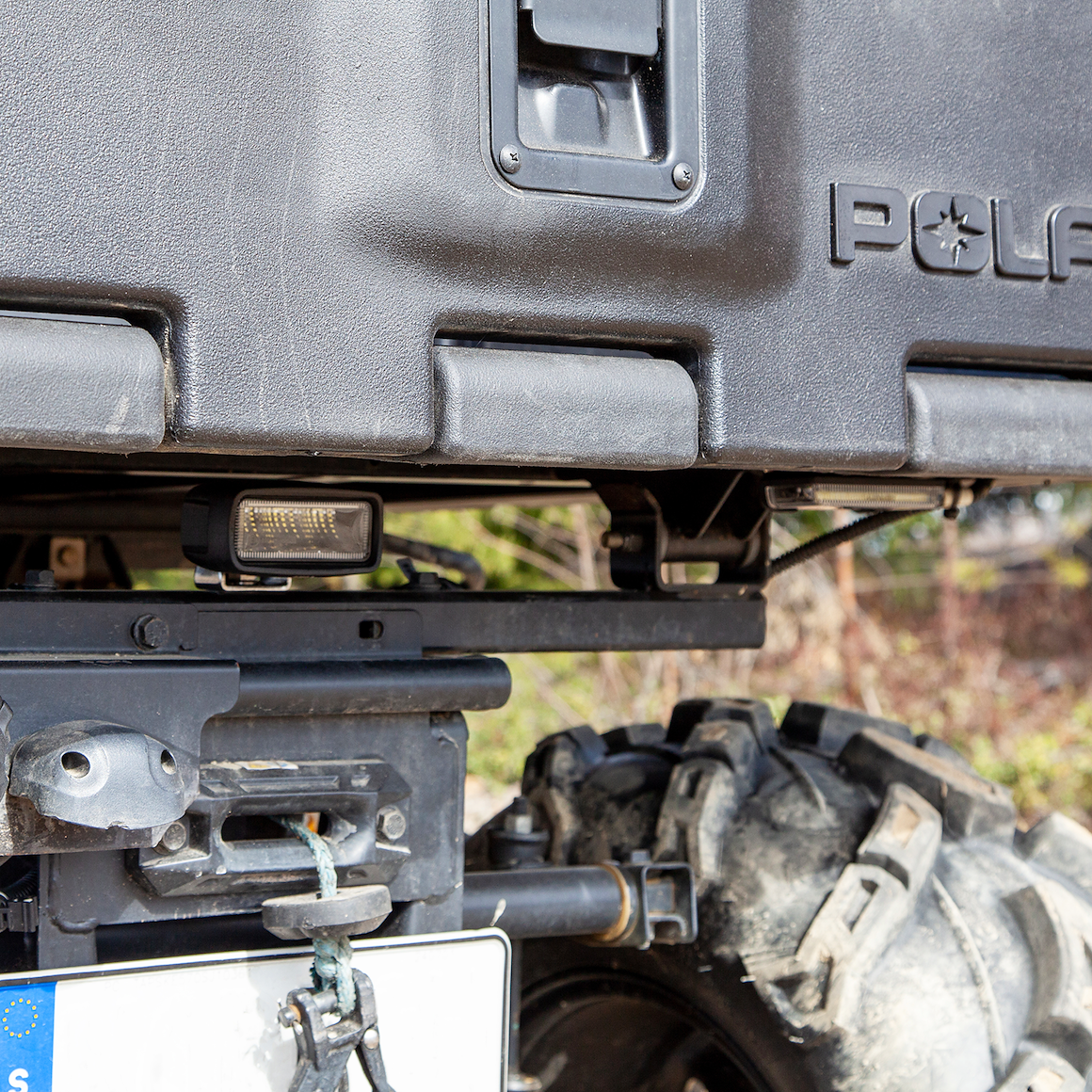 Inkoppling: LED-lampan levereras med fäste för montering, exempelvis på lastracket på din ATV. På lampan sitter en fästplatta som kan vinklas ca 180 grader. Plattan fästs sedan med den medföljande M8-bulten på 23 mm (vilken annan M8-bult som helst kan användas).