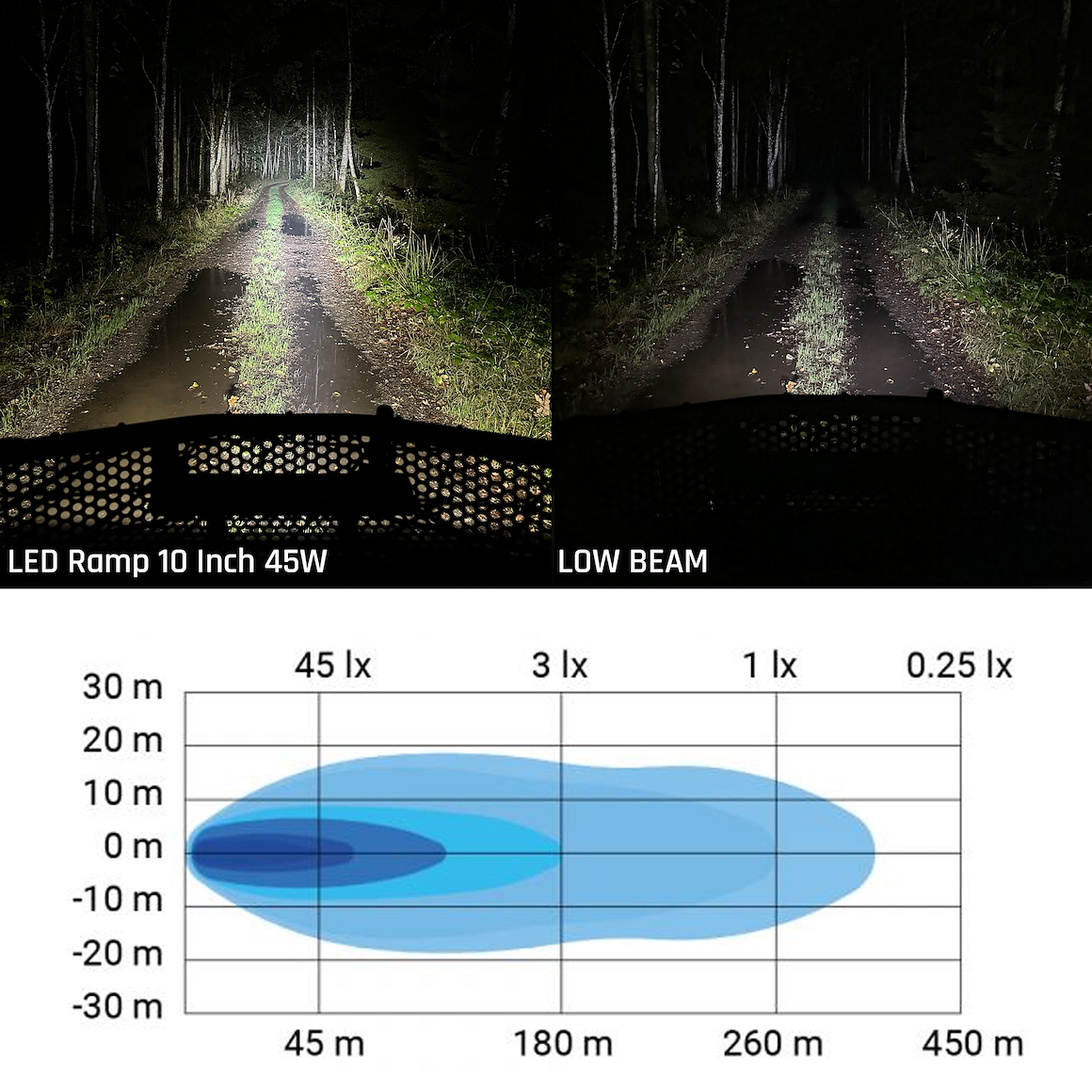 - En LED-ramp i kompakt format men med kraftfullt ljus. Kan monteras på många olika sätt och döljas snyggt i fronten på din maskin. Ger mer spotljus än vår bredare ramp men har även viss spridning som fungerar som arbetsljus i närområdet.
