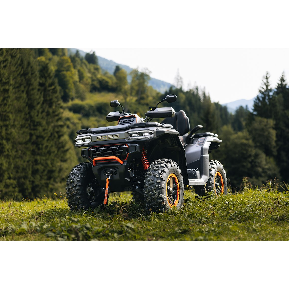 Den kraftfulla V-Twin-motorn ger ett jämnt och lättkontrollerat vridmoment, samtidigt som servostyrning och väl avstämd fjädring säkerställer en stabil och bekväm körning även i krävande terräng.