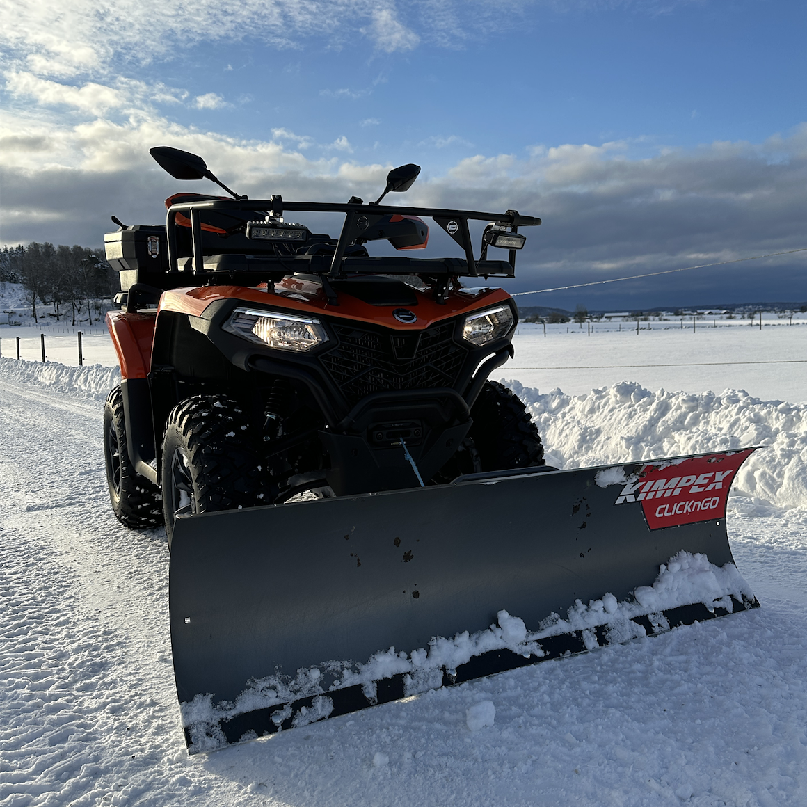 Kimpex Click n Go LT är en helt ny ATV-plog på marknaden. Plogen baseras på det populära Click n Go 2-plogbladet men har en kortare plogram med fäste för montering i fronten på din ATV.