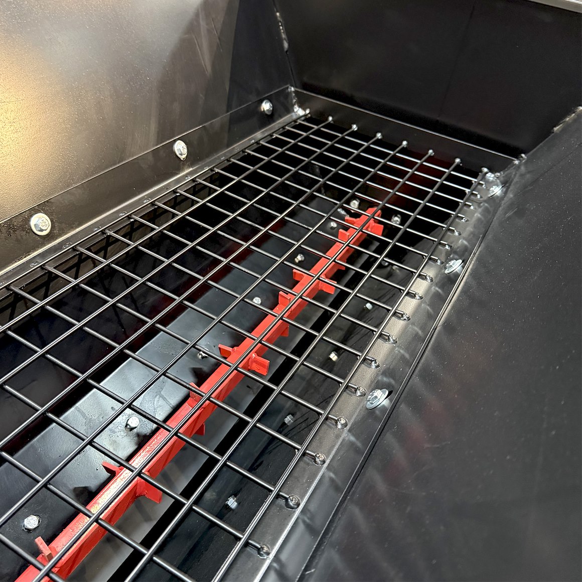 Spridaren har en justerbar utmatning som gör det enkelt att anpassa mängden sand eller grus som sprids, och den inbyggda omröraren säkerställer att materialet inte klumpar sig. Den är tillverkad med ett extra fokus på hållbarhet – sandblästrad och målad med en tvåkomponent våtlack med korrosionsskyddande pigment som ger ett utmärkt skydd mot rost och slitage.