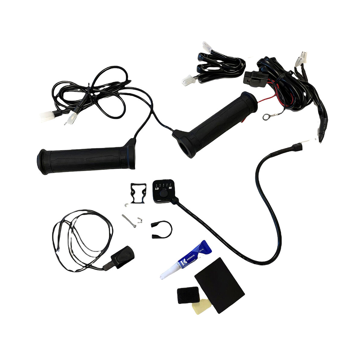Anslut handtagen och tumgasvärmeelementet med kontaktstycket till kontrollboxen. Anslut kontrollboxen till plus och minus på din ATV, det rekommenderas att ansluta till plus efter tändning.
