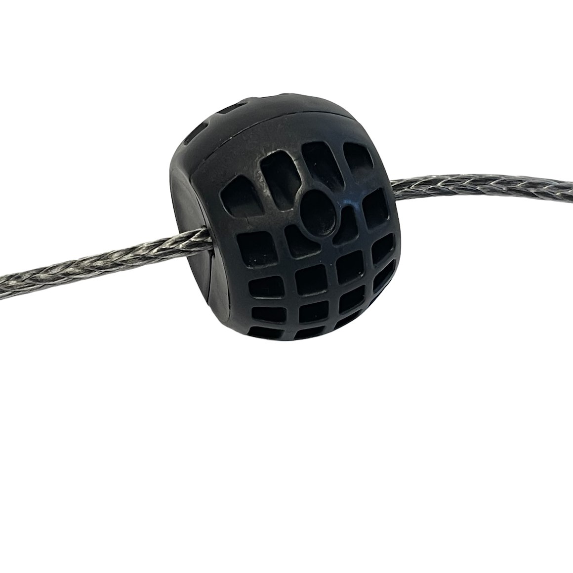 Stoppern monteras direkt på vinschlinan – oavsett om den är av stål eller syntet. Den fungerar som en avlastande stoppkloss som hindrar vinschkroken från att dras hela vägen in i linrullarna. Det minskar onödigt slitage på både wire och linförare och förlänger utrustningens livslängd.